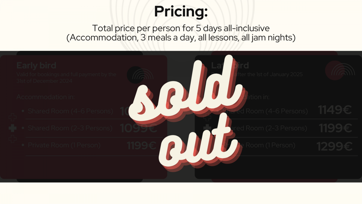 Students of the LAB Camp will be divided into 4 groups. All will get the same amount of seminars from the same teachers. You can let us know about your drumming level in order to place you in a group of similar level students.
